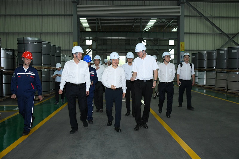 翁祖亮觀看數字化大屏了解企業生產經營情況 翁祖亮調研企業園區冷軋加工區并與一線干部職工交流 翁祖亮調研企業園區酸洗加工區